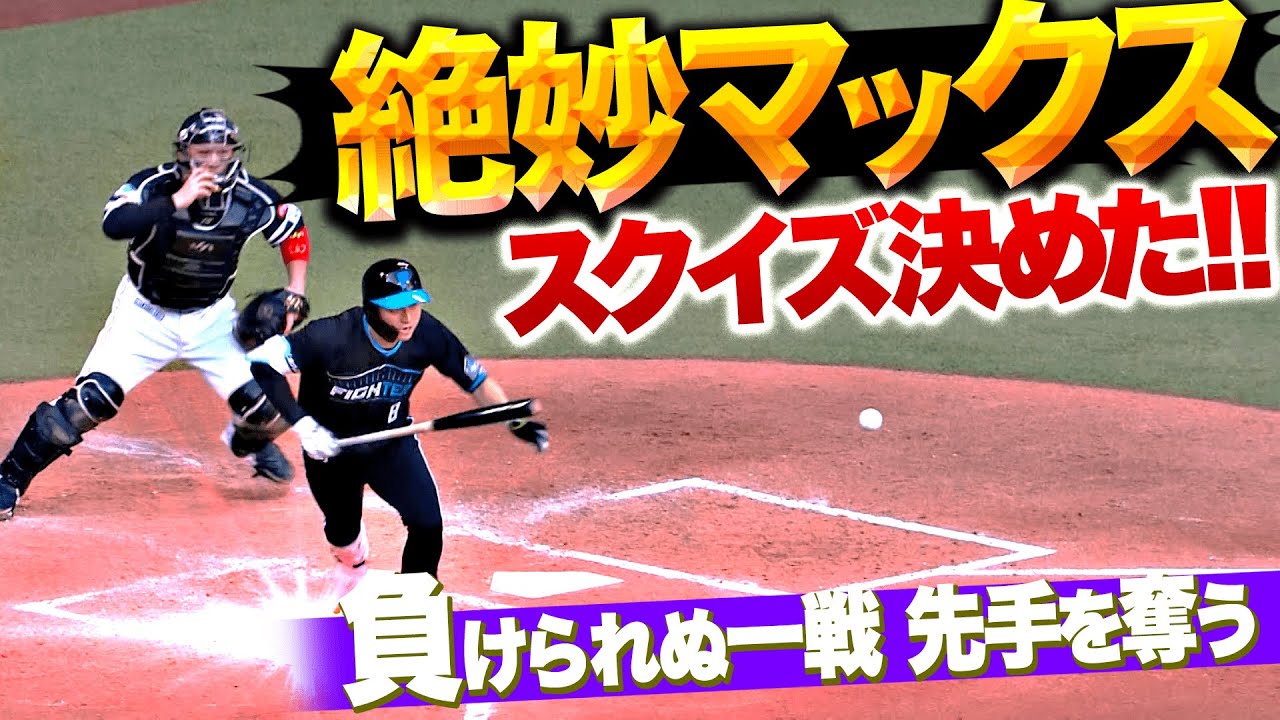 北海道日本ハムは3回、先頭の四球から1死1.3塁の好機を作ると、淺間大基がセーフティースクイズを敢行!! 一塁線際の絶妙な位置へ巧みに転がし、先制点をもぎ取った!!