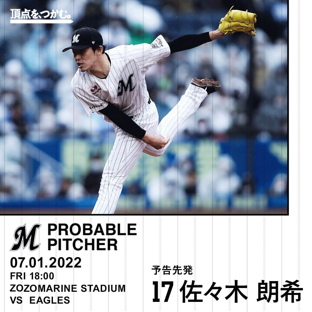 07.01.2022 予告先発:#佐々木朗希 投手 #chibalotte Chiba Lotte MarinesChiba Lotte Marines Official MediachibalotteNPB Pacific LeagueOfficial Media佐々木朗希千葉ロッテマリーンズ NPBHUB.COM | The Fanbase of Nippon Baseball & Nippon Professional Baseball