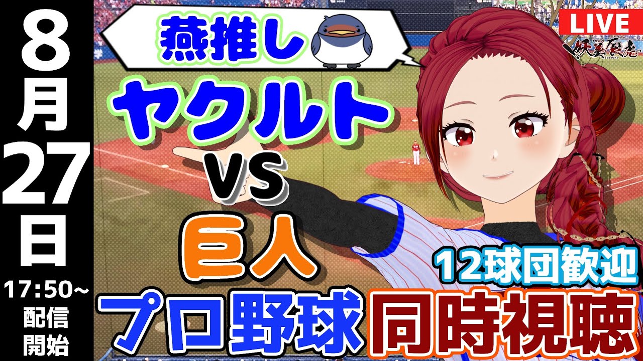 【ヤクルト 応援 実況同時視聴 】2024/8/27 #東京ヤクルトスワローズ 対 #読売ジャイアンツ #妖美辰虎【 Vtuber #巨人 #プロ野球ライブ 】