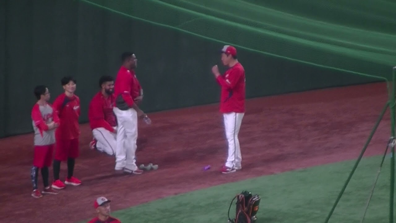 コルニエルたちと楽しそうに話すカープ新井貴浩 監督(2024年8月20日 読売ジャイアンツ 対 広島カープ) Hiroshima Toyo Carpコルニエル 野球広島東洋カープ NPBHUB.COM | The Fanbase of Nippon Baseball & Nippon Professional Baseball