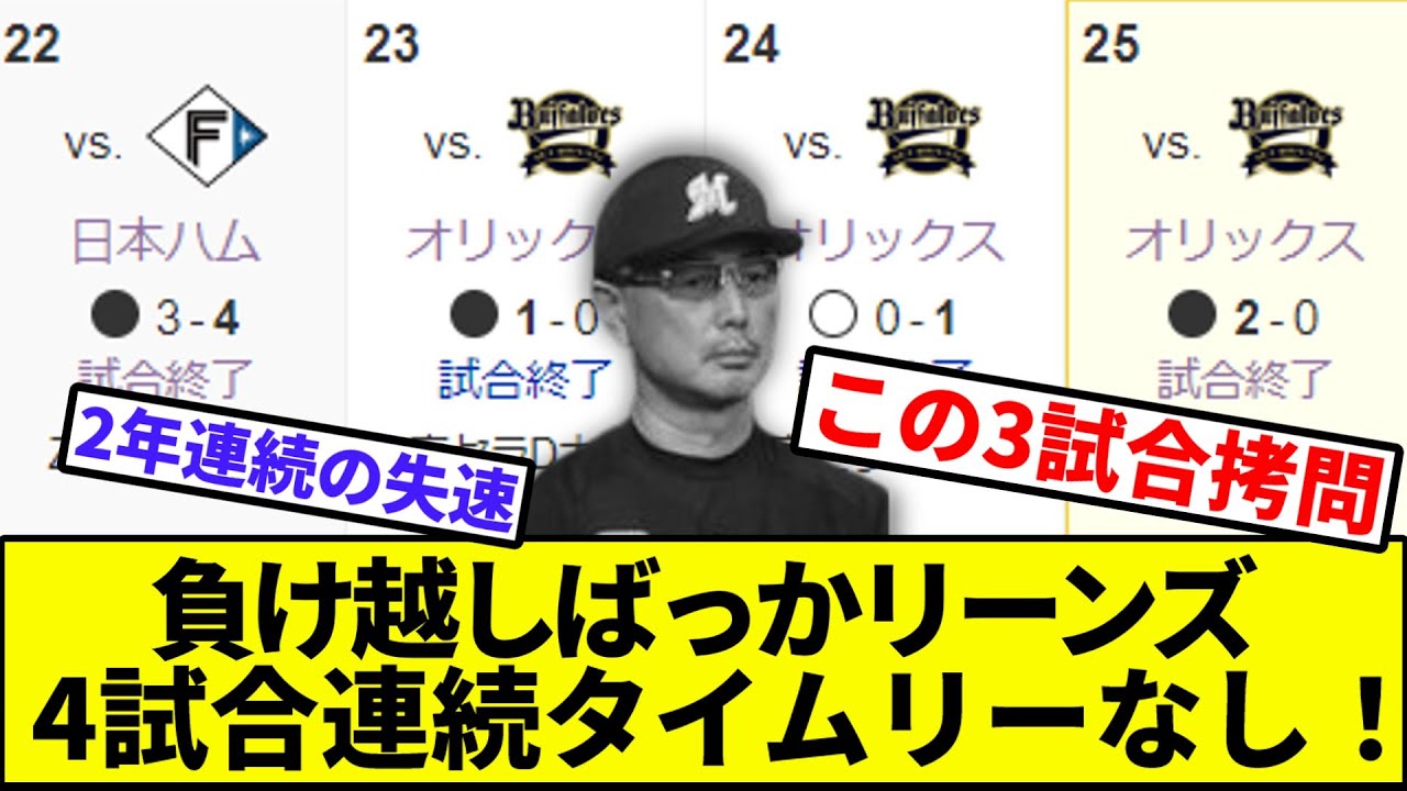 【ハム、いっちゃやだぁ…】負け越しばっかリーンズ、4試合連続タイムリーなし…【なんJ反応】【プロ野球反応集】【2chスレ】【1分動画】【5chスレ】【千葉ロッテマリーンズ】【オリックス】