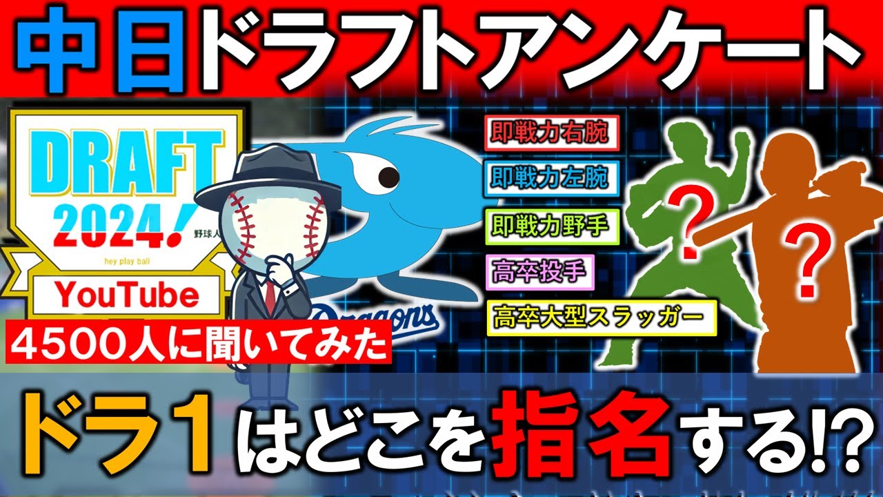 4500人に聞いてみた!中日が2024年の『ドラフト1位』で獲るべきポジションは!? 【即戦力右腕】【即戦力左腕】【即戦力野手】【高卒投手】【高卒大型スラッガー】