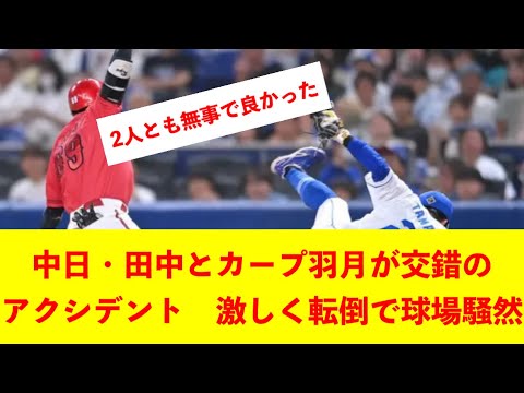 中日・田中とカープ羽月が交錯のアクシデント 激しく転倒で球場騒然