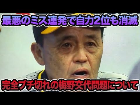 【最悪のミス連発で自力2位消滅】岡田監督が完全にブチ切れた梅野交代問題について.. 異常事態頻発で満身創痍過ぎる【阪神タイガース】