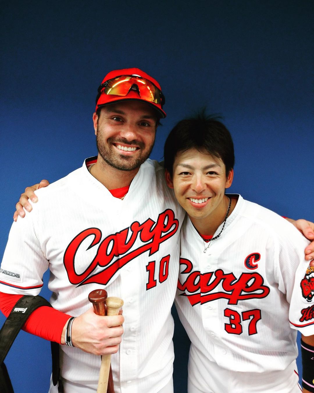 Hiroshima-Toyo-Carp: 2戦連発&2戦連続のお立ち台となったライアン!! 実はキャプテンたかよしと同級生だったみたいなので一緒に(^o^)v 以上、広報の松本高明でした #広島東洋…