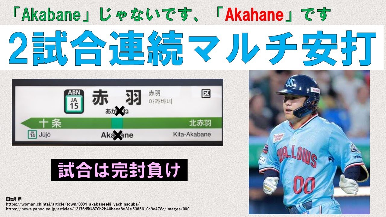 【赤羽】「Akabane」じゃないです、「Akahane」です 2試合連続マルチ安打!【試合は完封負け】2024-GAME91