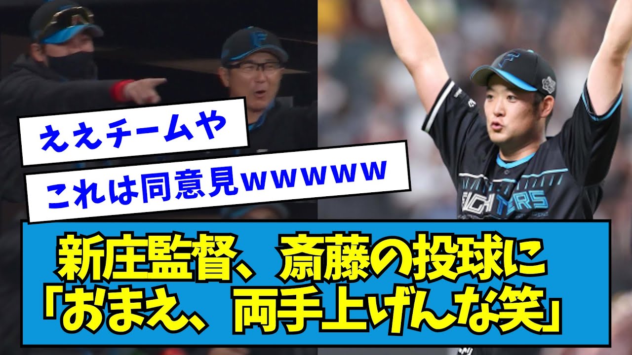 【爆笑】新庄監督、齋藤友貴哉の投球に「おまえ、両手上げんな笑」【なんJ反応】