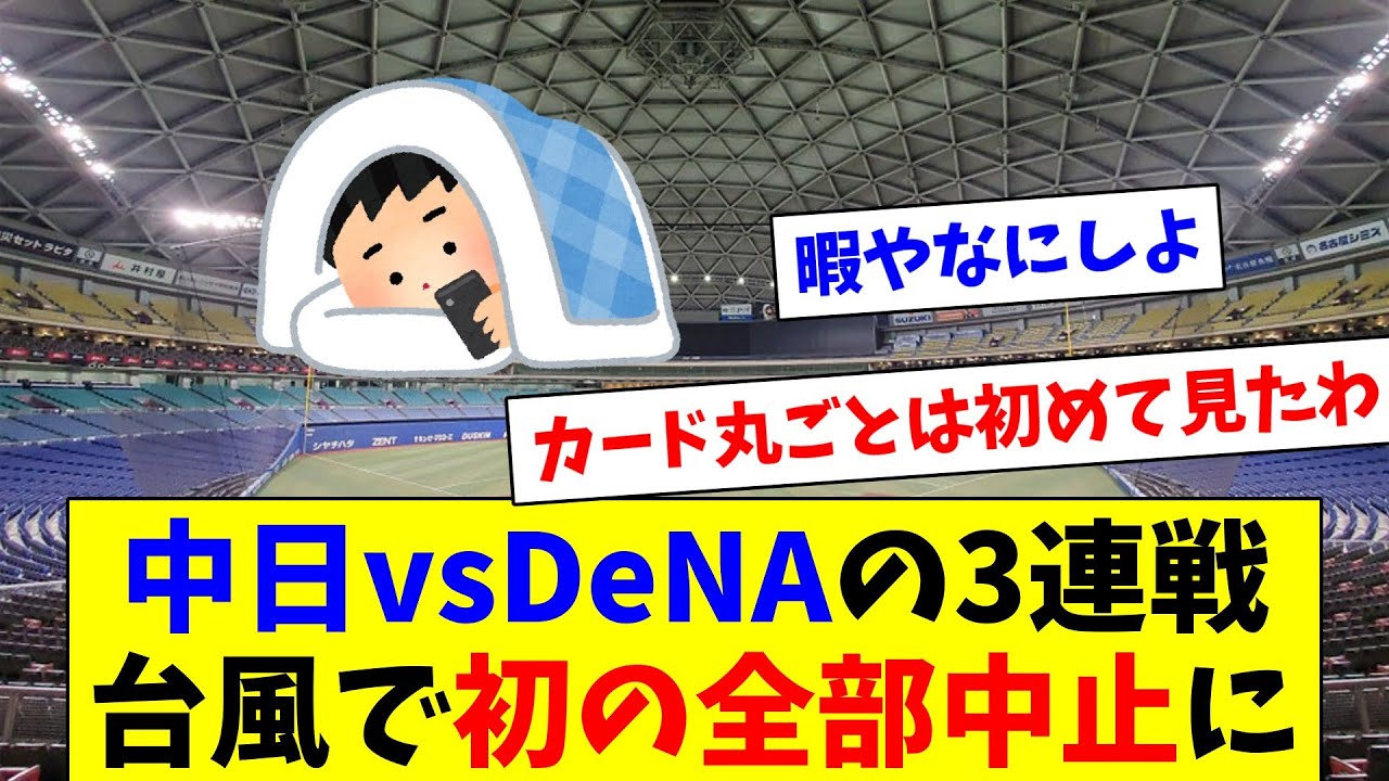 台風10号の影響で中日vsDeNAの3連戦が全て中止に…