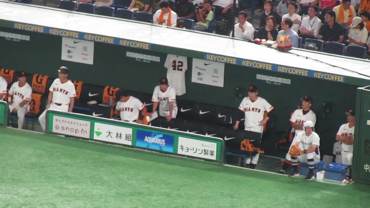 守備中のベンチの川相コーチや亀井コーチの動き( 読売ジャイアンツ 対 広島カープ 2024年8月22日)
