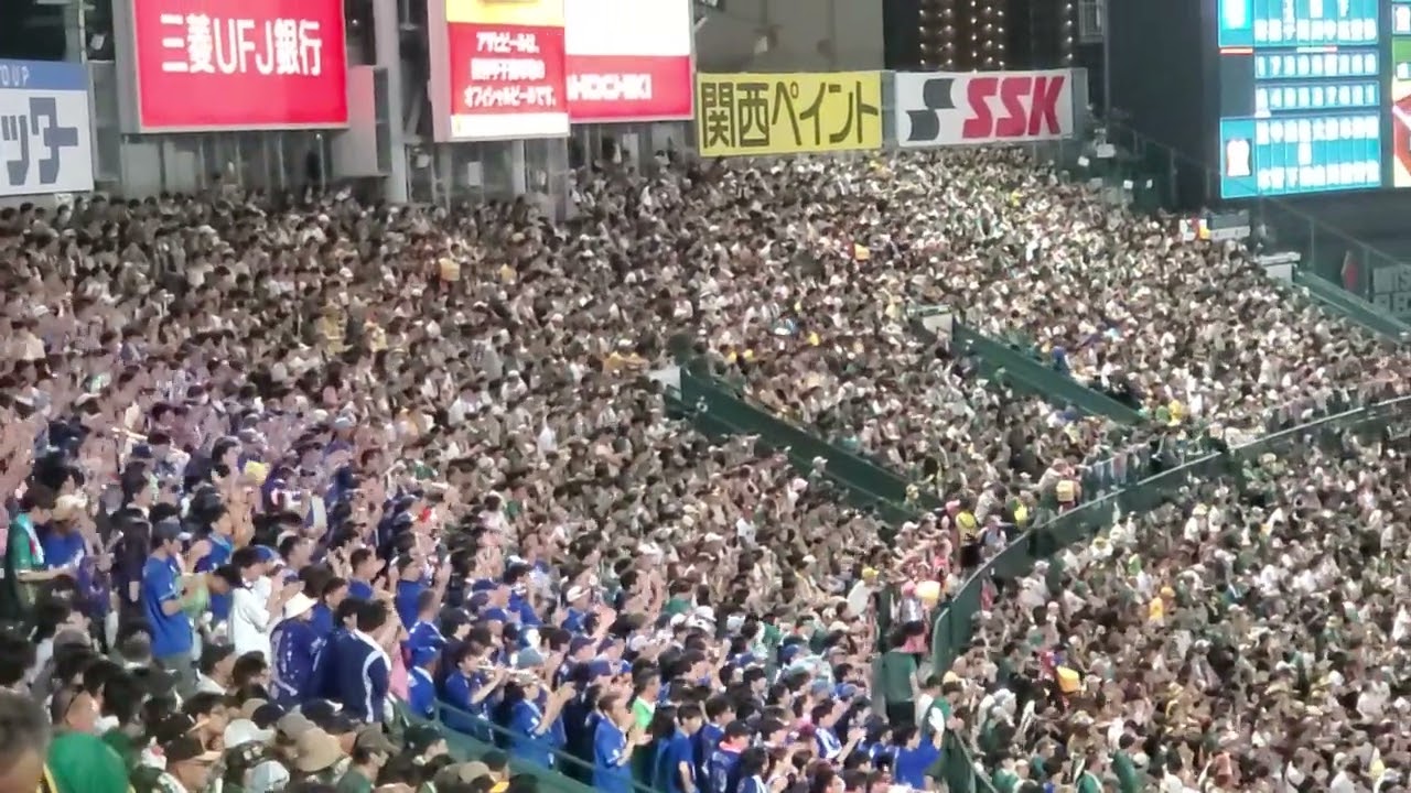 20240728 相手タイム間に流れるラッパで【燃えよドラゴンズ】7回表 中日ドラゴンズ@阪神甲子園球場・レフト外野 ウル虎の夏2024 Hanshin Tigers板山祐太郎阪神タイガース NPBHUB.COM | The Fanbase of Nippon Baseball & Nippon Professional Baseball