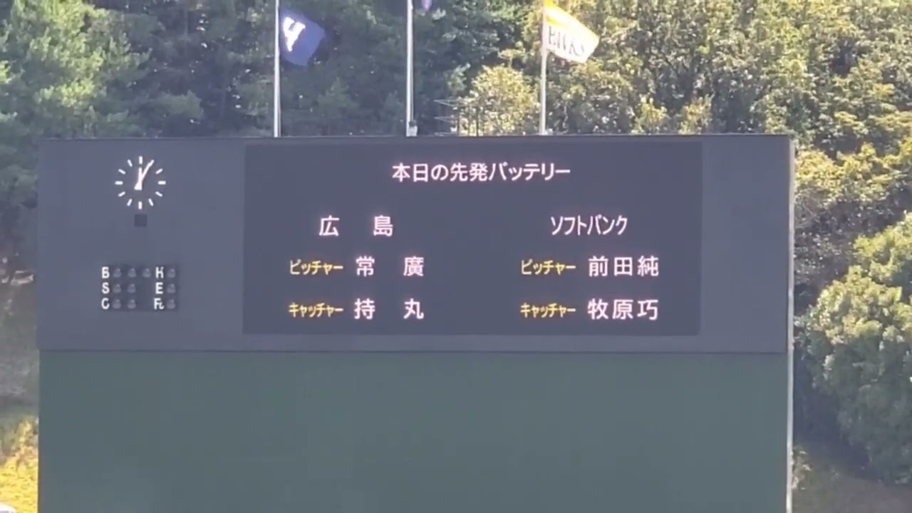20240901 △ 常廣羽也斗と前田純!両チームのバッテリー発表【広島東洋カープ2軍vs福岡ソフトバンクホークス2軍】@由宇球場[ウエスタン・リーグ 2軍戦]由宇練習場