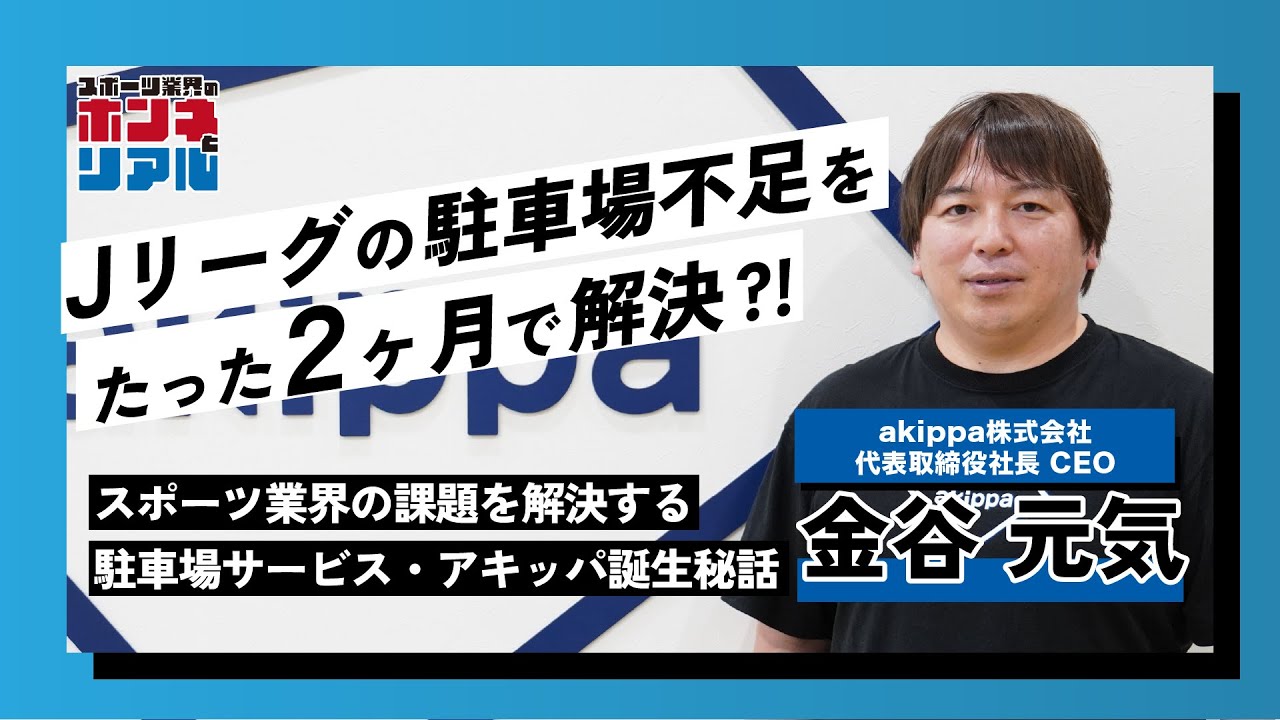 駐車場サービスを展開するakippa株式会社の金谷元気CEOが登場。数多くのスポーツクラブと連携しながら、アクセス問題を解決する画期的なサービスが誕生した裏側とは?