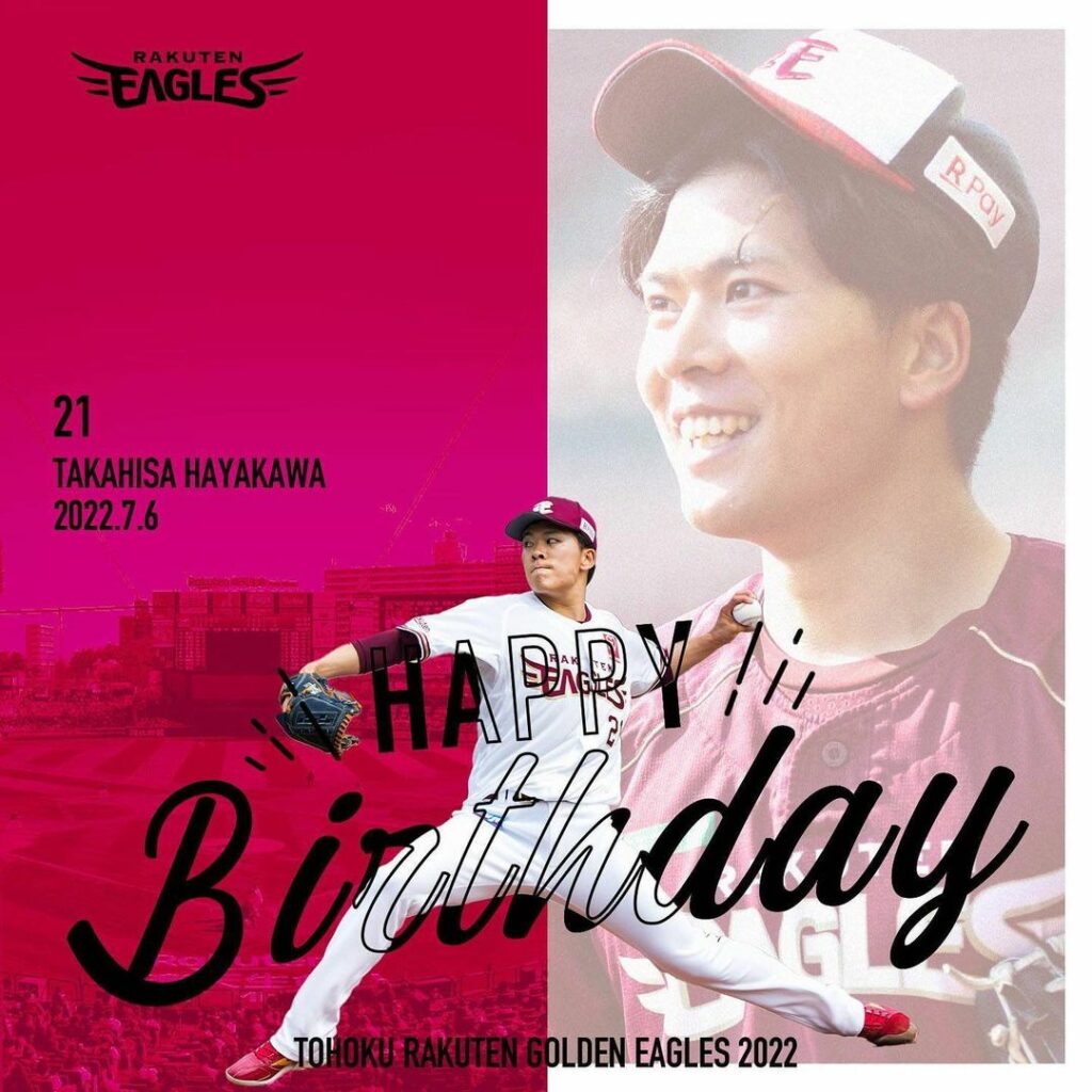 今日は早川隆久選手の24歳の誕生日 おめでとうございます お祝いメッセージをよろしくお願いします! #RakutenEagles #HappyBirthday #早川隆久 #24歳 24歳happybirthdayNPB Pacific LeagueOfficial MediarakuteneaglesTohoku Rakuten Golden EaglesTohoku Rakuten Golden Eagles Official Media早川隆久東北楽天ゴールデンイーグルス NPBHUB.COM | The Fanbase of Nippon Baseball & Nippon Professional Baseball