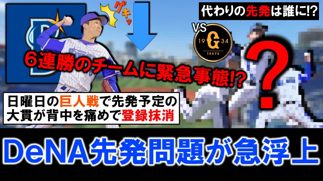 【6連勝のチームに緊急事態!?】横浜DeNA『大貫 晋一』が背中を痛め登録抹消!日曜日の巨人戦で先発予定であったため問題が浮上も、代わりの先発は一体誰になる!?