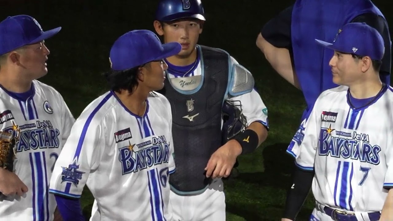 【試合後風景】お腹を気にする?森唯斗、相変わらず元気な桑原、珍しく山本祐大と真面目に話し込む知野、佐野、牧(2024.9.4/横浜スタジアム)