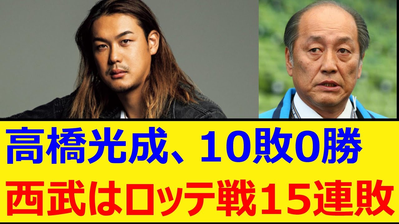 高橋光成、10敗0勝、西武はロッテ戦15連敗【プロ野球、なんj、なんg反応】【野球、2ch、5chまとめ】【埼玉西武ライオンズ、タマブラ、ライオンズ、渡辺久信】