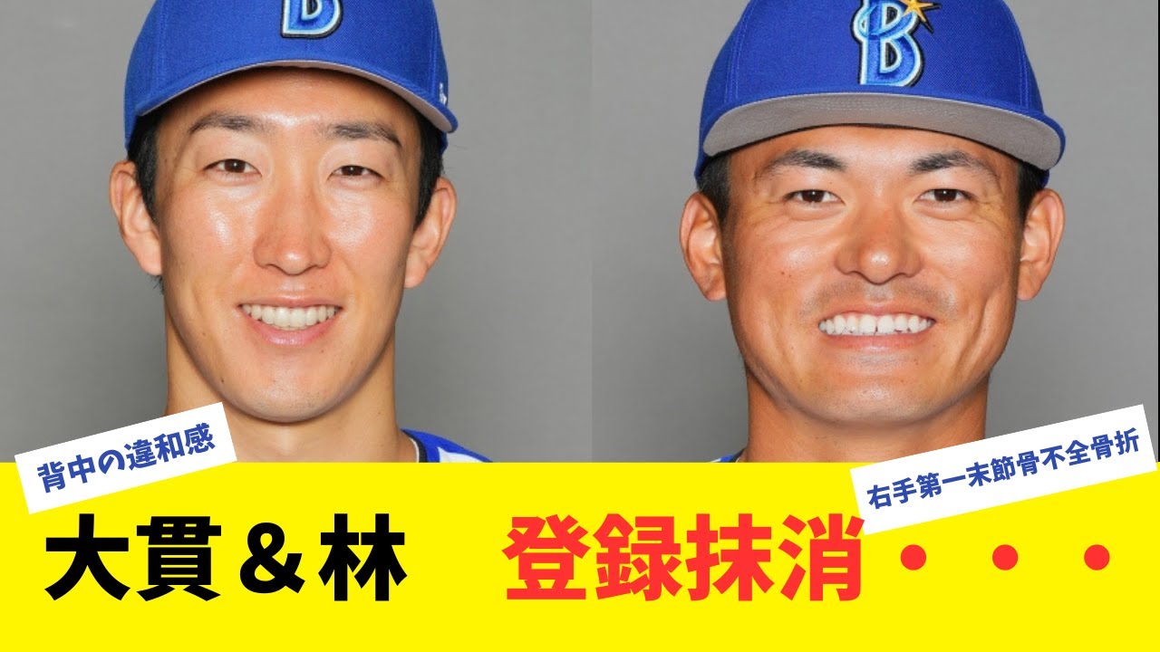 DeNA大貫晋一&林琢真、終盤戦の大切な時期に怪我で登録抹消…