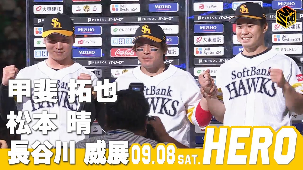9月8日(日)vs埼玉西武 #甲斐拓也 選手 #松本晴 投手 #長谷川威展 投手のヒーローインタビューです。