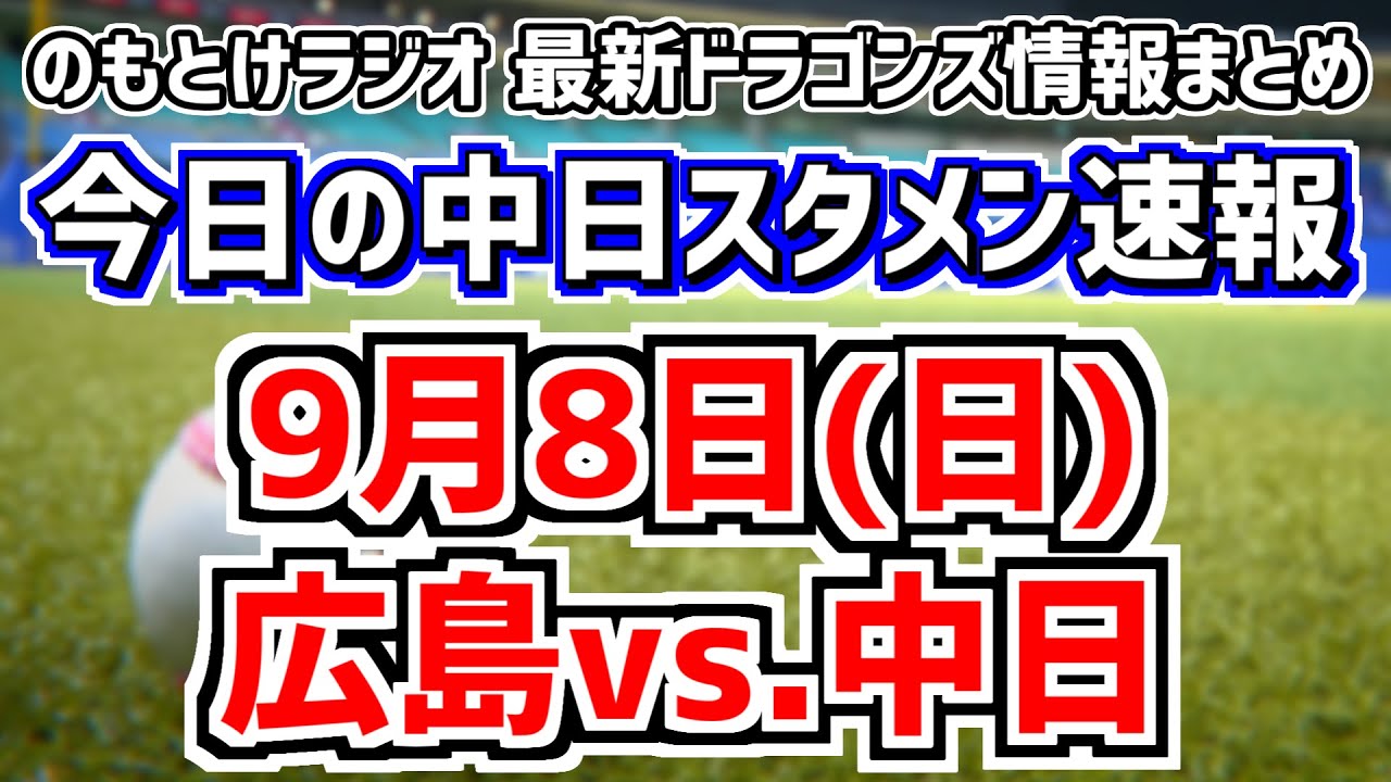 中日オーダー変更の反応放送 9月8日(日) 今日の中日ドラゴンズスタメン速報/試合直前雑談 広島vs.中日 のもとけラジオ番外編 涌井秀章ら2軍戦情報も