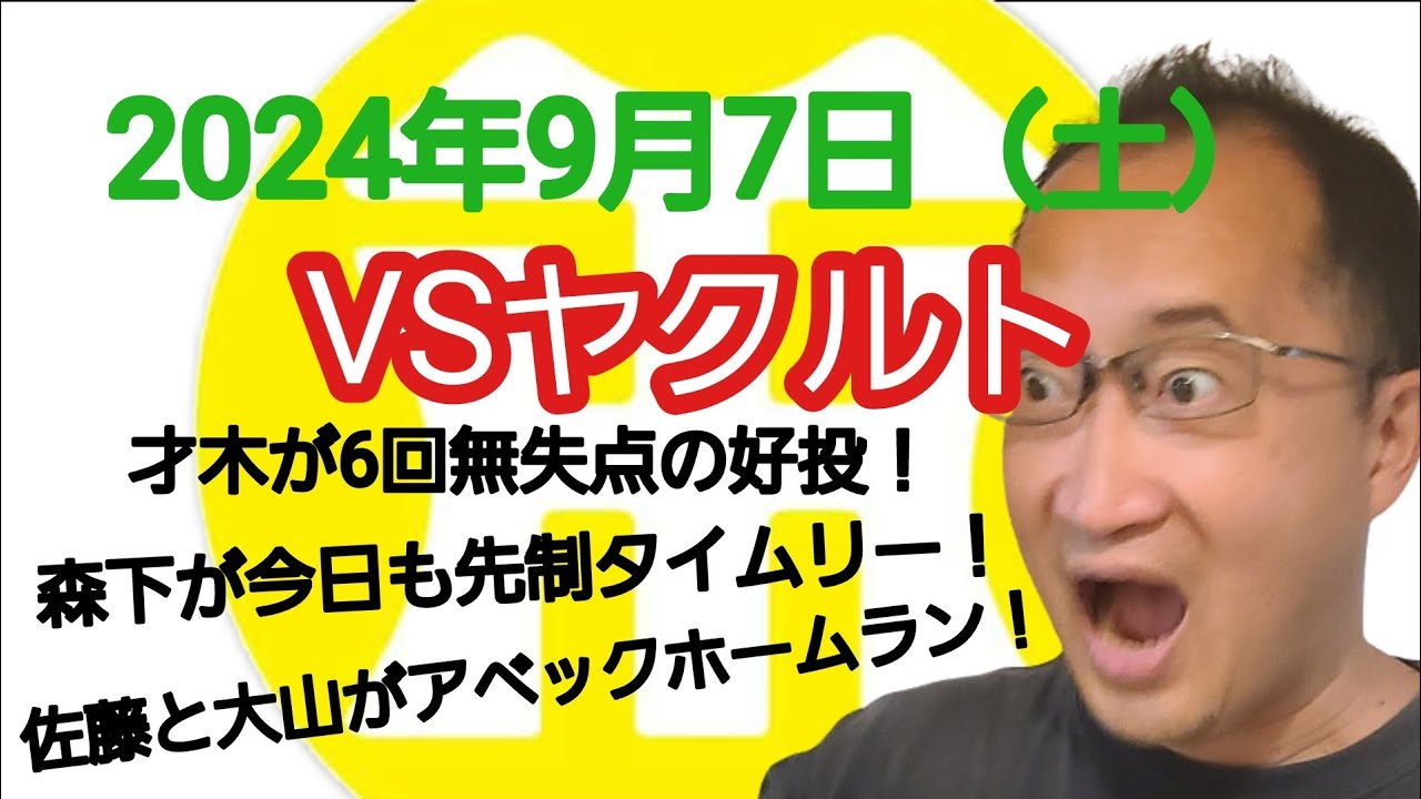 【阪神タイガースについて語る動画】2024年9月7日(土) ● ヤクルト 0 × 6 阪神 ○ 才木が6回無失点の好投! 森下が今日も先制タイムリー! 佐藤と大山がアベックホームラン!