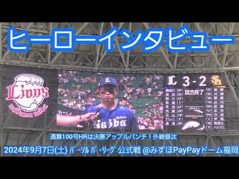 20240907【現地】通算100号決勝HR!外崎修汰のヒーローインタビュー 埼玉西武ライオンズ【アップルパンチ】【決勝ホームラン】@みずほPayPayドーム福岡・外野ライト