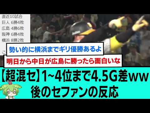 【超混セ】1~4位まで4.5G差wwwww後のセファンの反応【阪神タイガース/プロ野球/なんJ2ch5chスレまとめ/セリーグ/桐敷拓馬/ゲラ/石井大智/森下翔太/佐藤輝明/2024年9月5日】