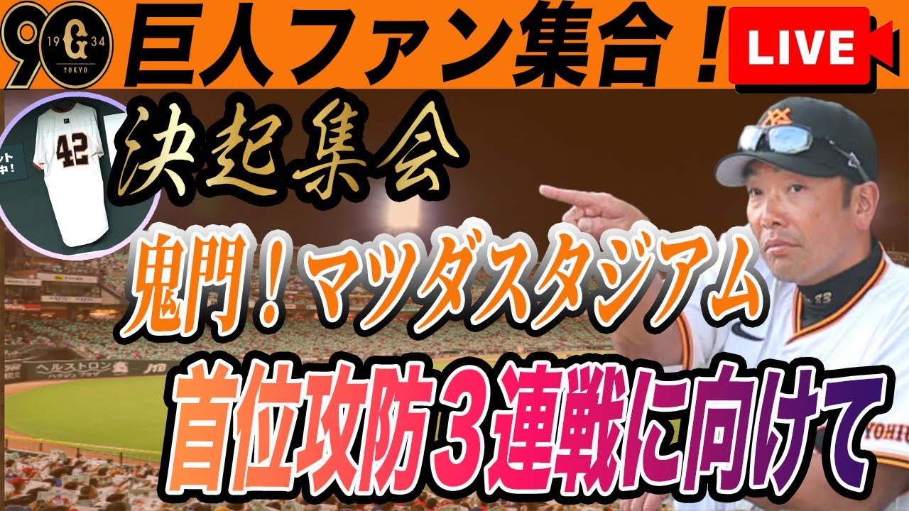【決起集会!巨人ファン集合】マツダスタジアム首位攻防3連戦に向けて!など巨人雑談ライブ 広島ファンも大歓迎 読売ジャイアンツ