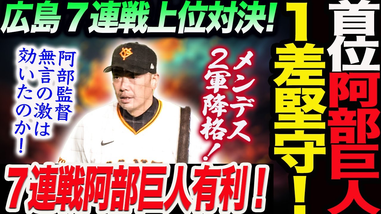 首位の阿部巨人が1ゲーム差を堅守!明日から7連戦は阿部巨人が断然有利な理由!速報メンデス2軍降格!阿部監督無言の激は効いたのか!読売巨人軍 ジャイアンツ 巨人 GIANTS 阿部監督