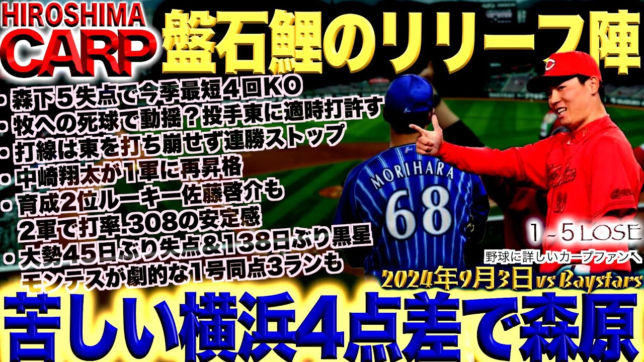首位堅守!【広島カープ】完敗!でも巨人も負けた!それだけ。(2024/09/03)