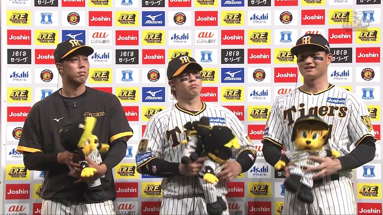 【#青柳晃洋 選手、#梅野隆太郎 選手、#森下翔太 選手のヒーローインタビュー、#岡田彰布 監督インタビュー】9月10日(火) 阪神vsDeNA(甲子園)