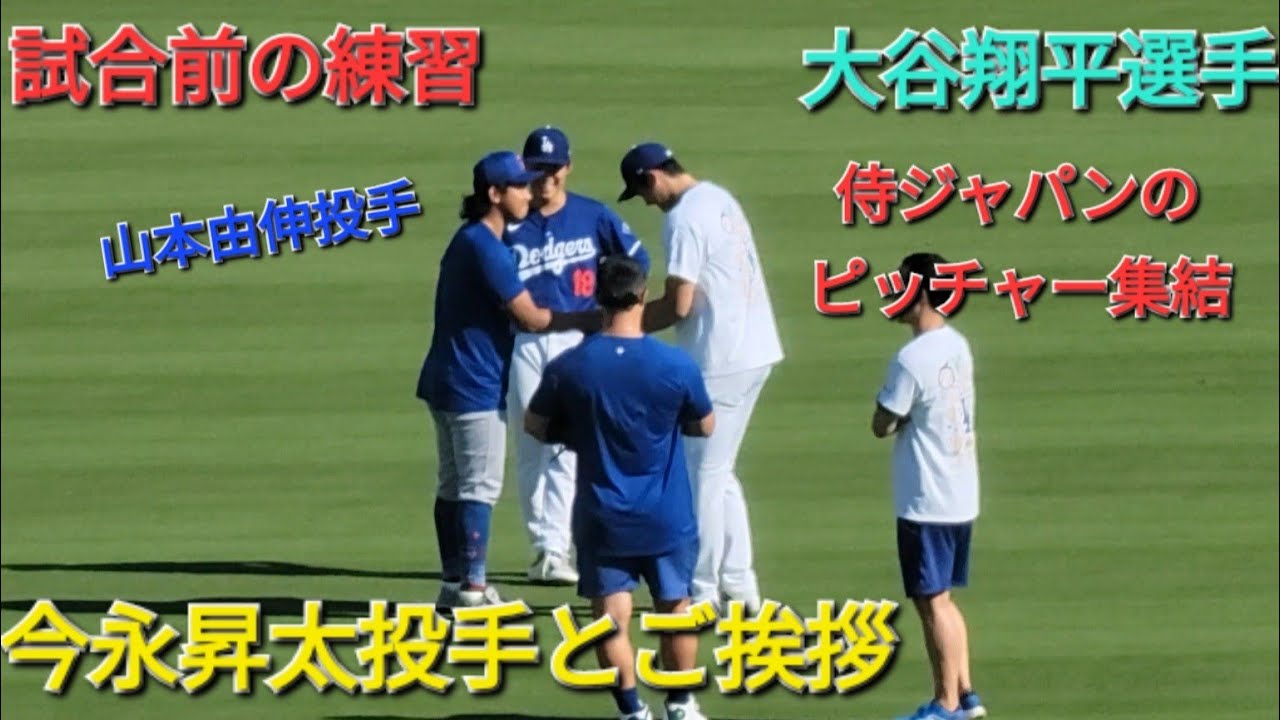 試合前の練習〜今永昇太投手とご挨拶〜【大谷翔平選手】vs カブス〜シリーズ初戦〜 ChicagoCubsdodgersimanagaOhtaniOhtani ShoheishoheiShohei OhtanishoutaYamamotoYOKOHAMA DeNA BAYSTARSYoshinobuカブスシカゴドジャース今永昇太大谷大谷翔平山本由伸横浜DeNAベイスターズ翔平 NPBHUB.COM | The Fanbase of Nippon Baseball & Nippon Professional Baseball