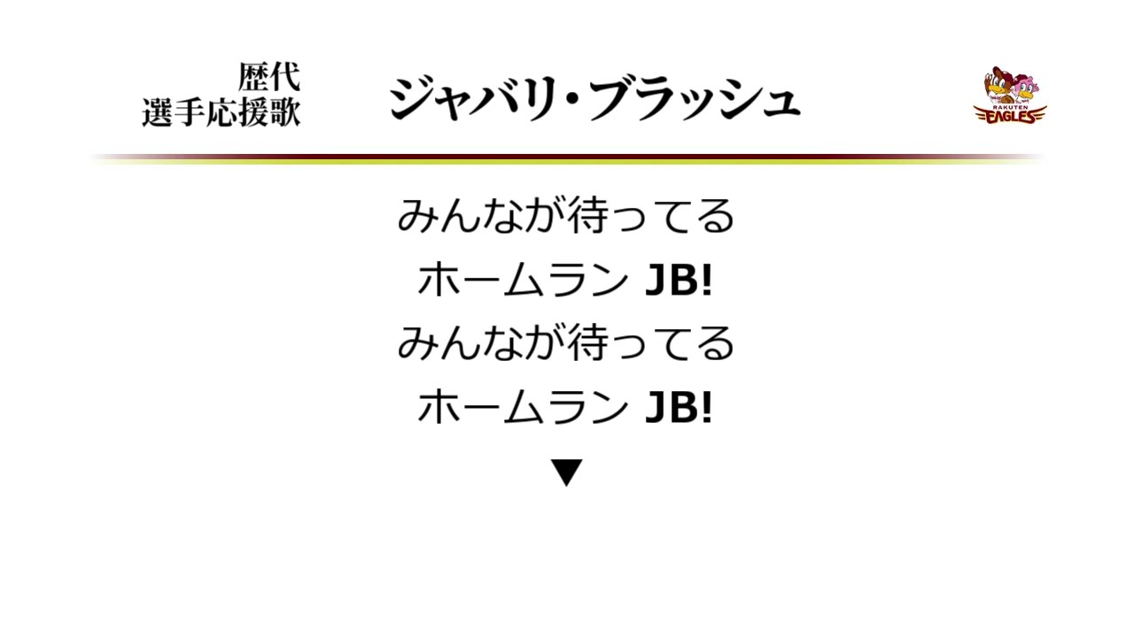 東北楽天ゴールデンイーグルス ジャバリ・ブラッシュ 応援歌 [MIDI] コロナのせいで実質幻になってしまった楽天ブラッシュの応援歌です。 そもそも近年の楽天助っ人野手って、 個人応援歌が作られる水準に達するだけの選手が全然いないんですよね。 今年のフランコにも作られなかったのは、なかなかハードルが高い。 Jabari Blash (Baseball Player)Tohoku Rakuten Golden EaglesTohoku Rakuten Golden Eagles (Baseball Team)ジャバリ・ブラッシュなんぶふじ応援歌東北楽天ゴールデンイーグルス NPBHUB.COM | The Fanbase of Nippon Baseball & Nippon Professional Baseball