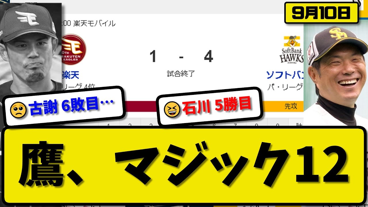 【1位vs4位】ソフトバンクホークスが楽天イーグルスに4-1で勝利…9月10日2連勝で優勝マジック12…先発石川6.1回1失点5勝目…栗原&近藤&山川が活躍【最新・反応集・なんJ・2ch】プロ野球 #福岡ソフトバンクホークス #東北楽天ゴールデンイーグルス #プロ野球 #反応集 Fukuoka SoftBank Hawks福岡ソフトバンクホークス NPBHUB.COM | The Fanbase of Nippon Baseball & Nippon Professional Baseball
