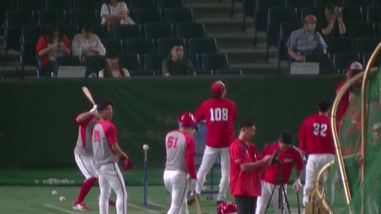 カープ上本崇司のティーバッティング(2024年8月22日 広島カープの練習)