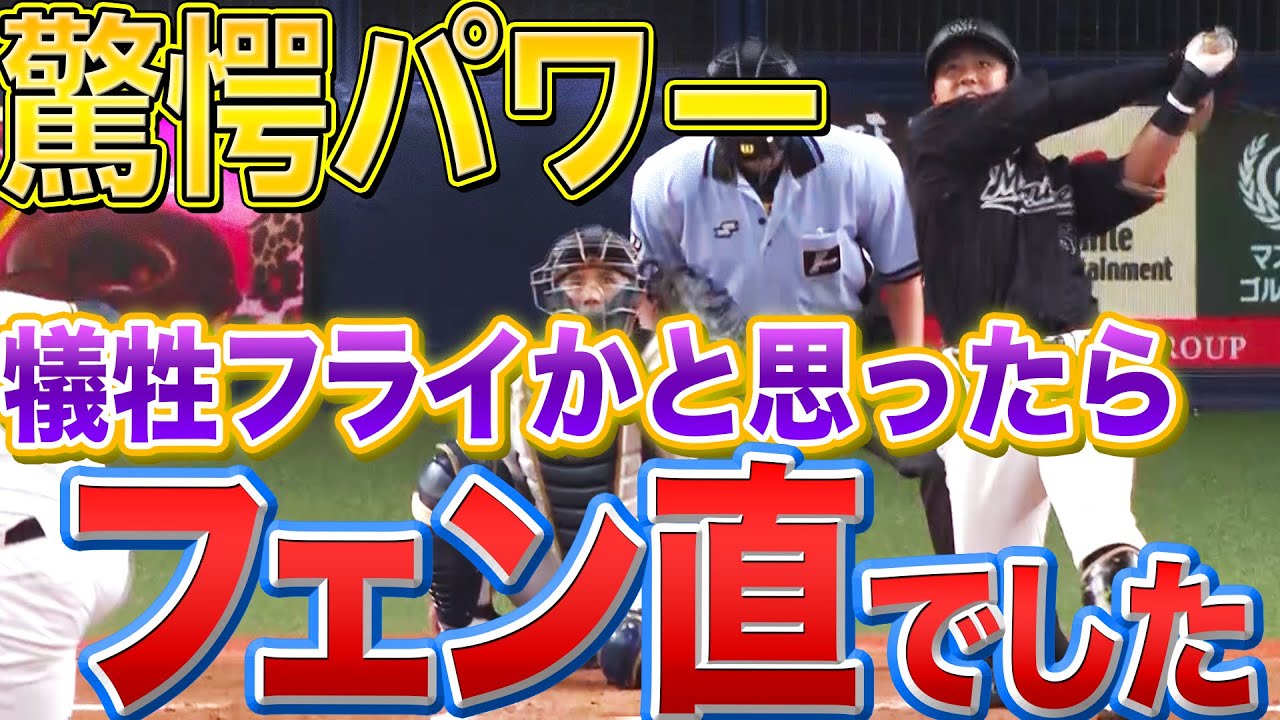犠牲フライかと思われた打球がまさかのフェンス直撃と、驚きのパワーを披露しました。