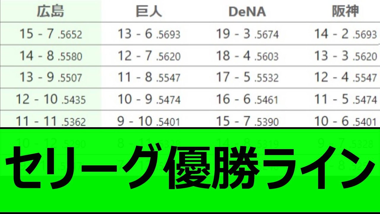セリーグ優勝ライン