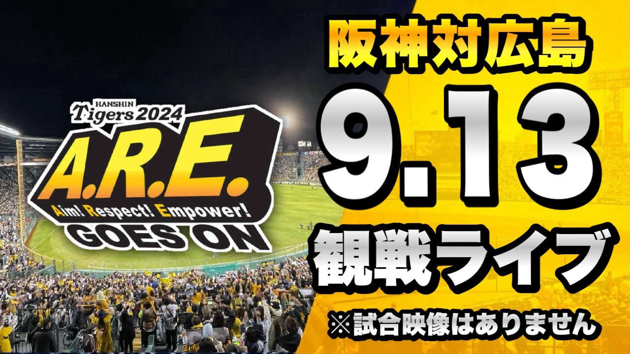 9/13 阪神タイガース 対 広島東洋カープのセ・リーグ公式戦を一緒に観戦するライブ配信です、本配信に試合のLIVE中継映像はございませんので予めご了承ください。