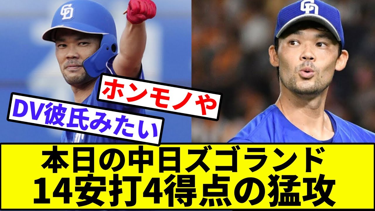 中日14安打4得点の猛攻で連敗脱出!!