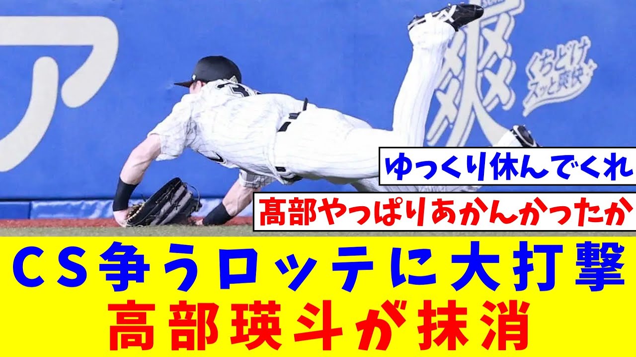 CS争うロッテに大打撃 高部瑛斗が抹消 前日8日に守備で左腕を負傷し途中交代【なんJ反応】【プロ野球反応集】【2chスレ】【5chスレ】