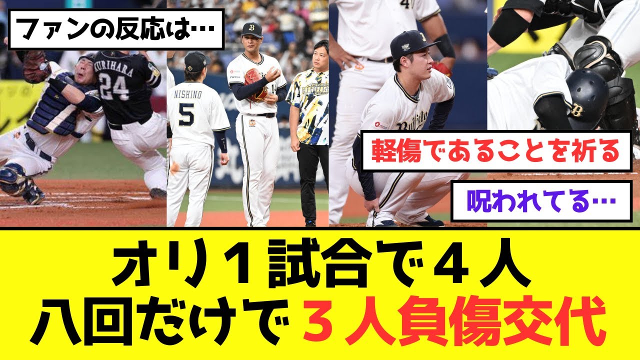 【オリックス悲劇】1試合で4人、八回だけで3人負傷交代…《ファンの反応は…》 オリックスは八回に吉田輝星、宇田川優希の2投手連続が緊急降板。さらに捕手若月もアクシデントに見舞われる緊急事態が生じた。 この動画はVOICEVOXを利用しています。 ・四国めたん ・ずんだもん ・春日部つむぎ 皆さんの意見をお待ちしております!!! #プロ野球 #悲報 #なんJ #プロ野球Hokkaido Nippon-Ham FightersWBCなんJ佐々木郎希北海道日本ハムファイターズ吉田輝星宮城大弥牧郎希野球 NPBHUB.COM | The Fanbase of Nippon Baseball & Nippon Professional Baseball