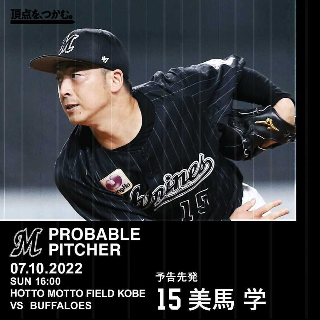 07.10.2022 予告先発:#美馬学 投手 #chibalotte Chiba Lotte MarinesChiba Lotte Marines Official MediachibalotteNPB Pacific LeagueOfficial Media千葉ロッテマリーンズ美馬学 NPBHUB.COM | The Fanbase of Nippon Baseball & Nippon Professional Baseball