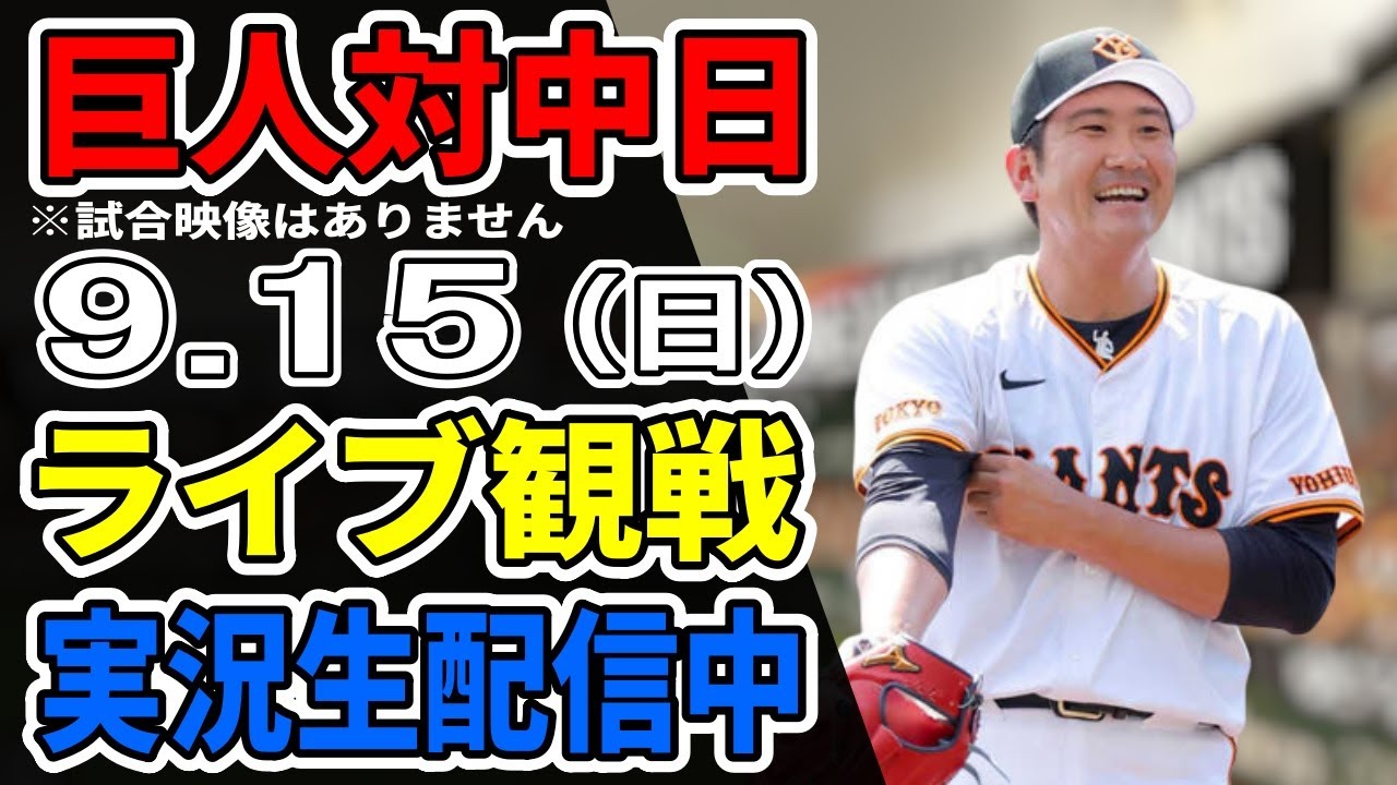 【巨人ライブ】9/15 巨人 対 中日ドラゴンズをみんなで応援するライブ!巨人戦を生配信中!! #読売ジャイアンツ #中日ライブ
