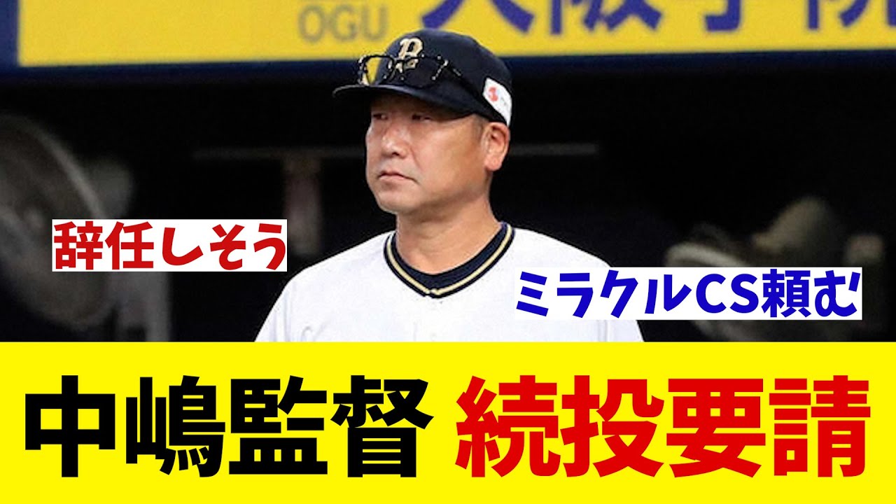 オリックス 4連覇逃すも中嶋監督に続投要請【野球情報】【2ch 5ch】【なんJ なんG反応】【野球スレ】