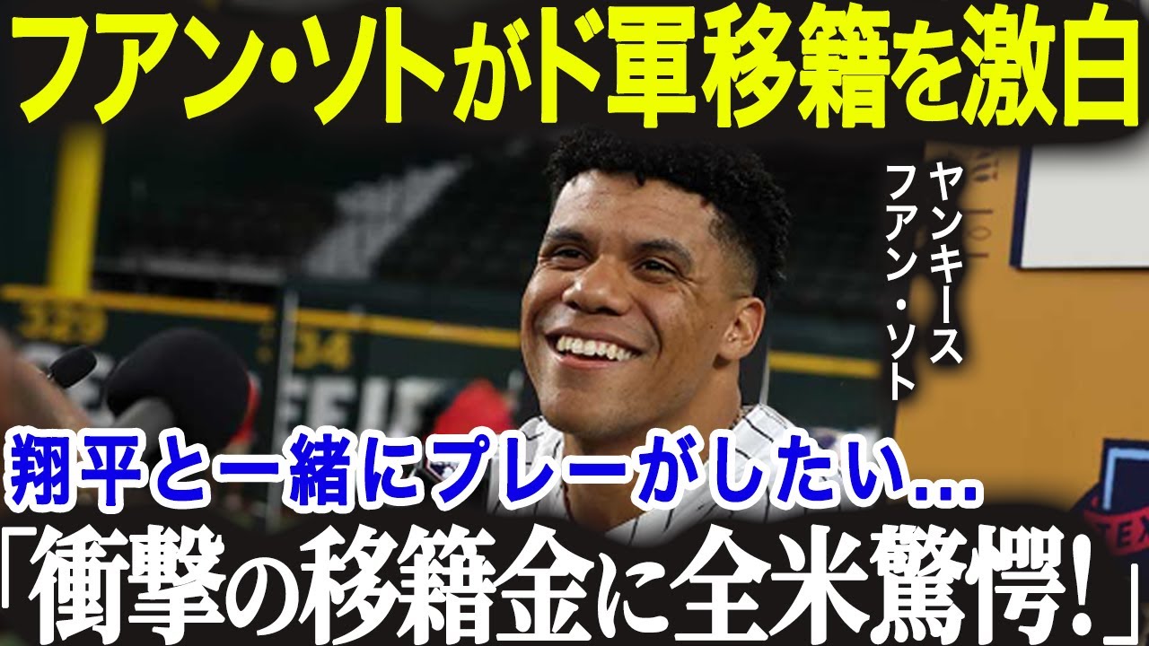 ヤンキースのフアン・ソトがドジャースへ?大谷を超える移籍金の噂が浮上!「翔平とプレーしたいんだ…」2024年オフのFA市場の注目選手【海外の反応/MLB/メジャー/野球】 ご視聴いただきありがとうございます。 このチャンネルは大谷翔平選手を応援しています。 一緒に野球界のレジェンド、大谷選手を応援しましょう! good評価や、コメントをいただけたら、とても嬉しいです。 よろしくお願いいたします! #大谷翔平 #野球 #mlb #海外の反応 #ホームラン #ドジャース mlbMLB2024shoheiYOKOHAMA DeNA BAYSTARSスポーツソト 野球ドジャースホームランメジャーリーグロバーツ監督大谷大谷翔平山本由伸横浜DeNAベイスターズ海外の反応真美子野球 NPBHUB.COM | The Fanbase of Nippon Baseball & Nippon Professional Baseball