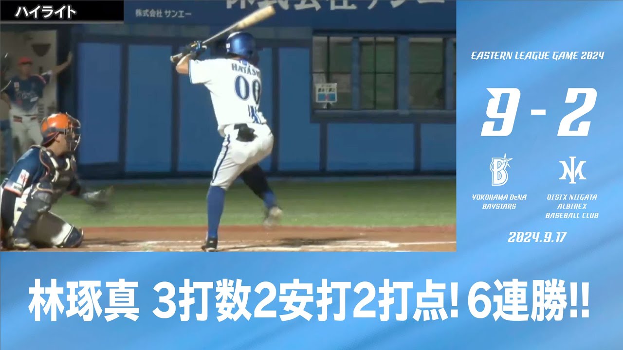 2024.9.17 ファームハイライト【DeNA vs オイシックス】 2024シーズン イースタン・リーグ公式戦 【ハイライト映像提供】 イージースポーツ:https://easysports.jp/ #林琢真 #ベイスターズ #横浜進化 #プロ野球baystarsCENTRAL LEAGUEDeNAOfficial ChannelOfficial VideoYOKOHAMA DeNA BAYSTARSYOKOHAMA DeNA BAYSTARS Official ChannelYOKOHAMA DeNA BAYSTARS Official Videoベイスターズ横浜横浜DeNAベイスターズ横浜スタジアム NPBHUB.COM | The Fanbase of Nippon Baseball & Nippon Professional Baseball