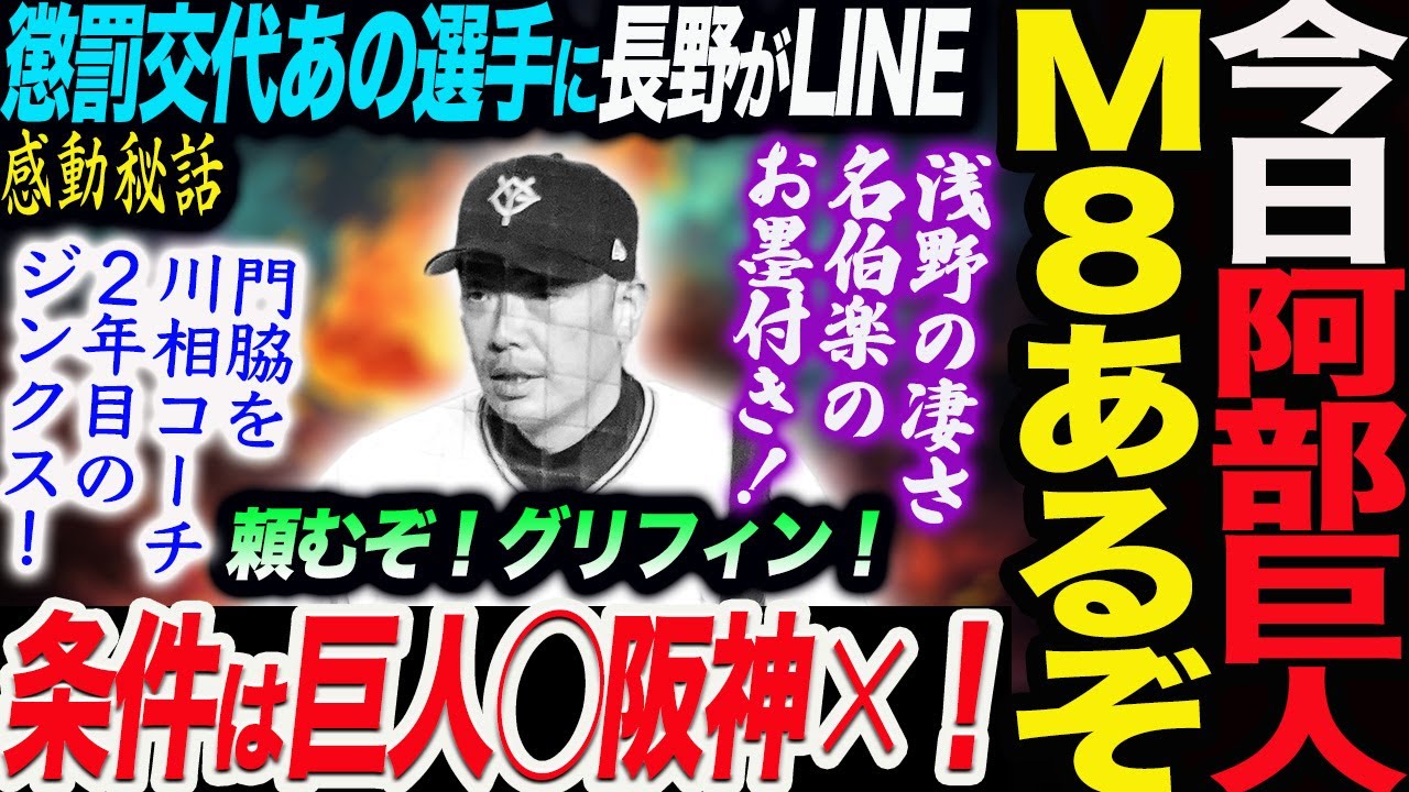あるぞ阿部巨人M8条件は巨人◯阪神×!!懲罰交代あの選手に長野がLINE感動秘話!頼むぞ!グリフィン!門脇を川相コーチが!浅野の凄さ名伯楽が!読売巨人軍 ジャイアンツ 巨人 GIANTS 阿部監督