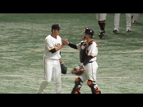 巨人最終回は堀田賢慎投手がマウンドへ!1安打許すも無失点に抑え岸田捕手とハイタッチ!巨人vs中日 9回表