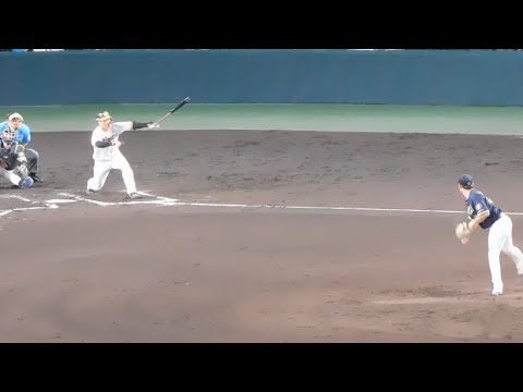 【片手打ち】大山悠輔 変化球を泳いでレフト戦へ2塁打 喉から手が出るほど欲しい追加点を奪えるか