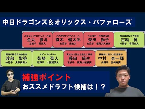 オリックス・バファローズ&中日ドラゴンズ2024年ドラフト!補強ポイント!おススメドラフト候補は?【やまけんさん】