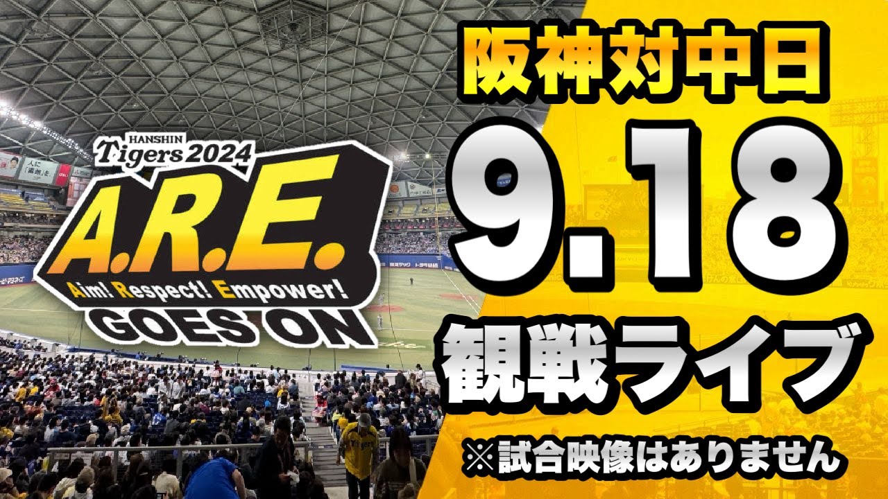 9/18 阪神タイガース 対 中日ドラゴンズのセ・リーグ公式戦を一緒に観戦するライブ配信です、本配信に試合のLIVE中継映像はございませんので予めご了承ください。